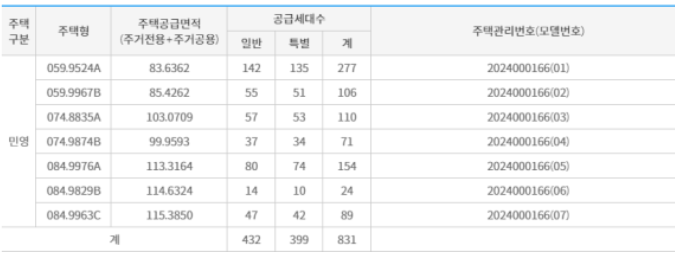 세대수 : 총 1,200세대 중 일반공급 831세대 분양