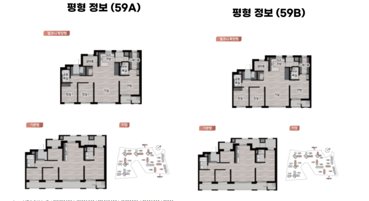 [김포 북변 우미린 파크리브 평형정보 및 동호수 배치도]