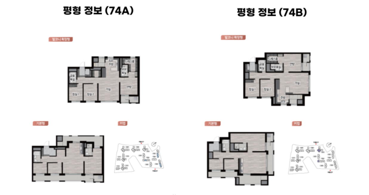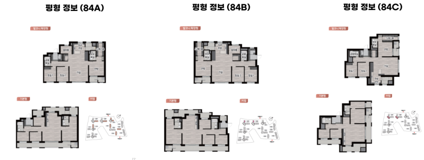 [김포 북변 우미린 파크리브 평형정보 및 동호수 배치도]