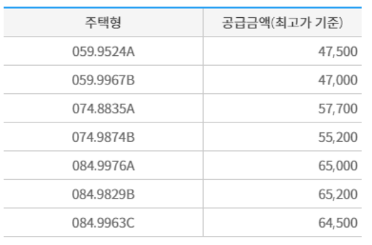 [김포 북변 우미린 파크리브 공급대상 및 공급금액 안내]