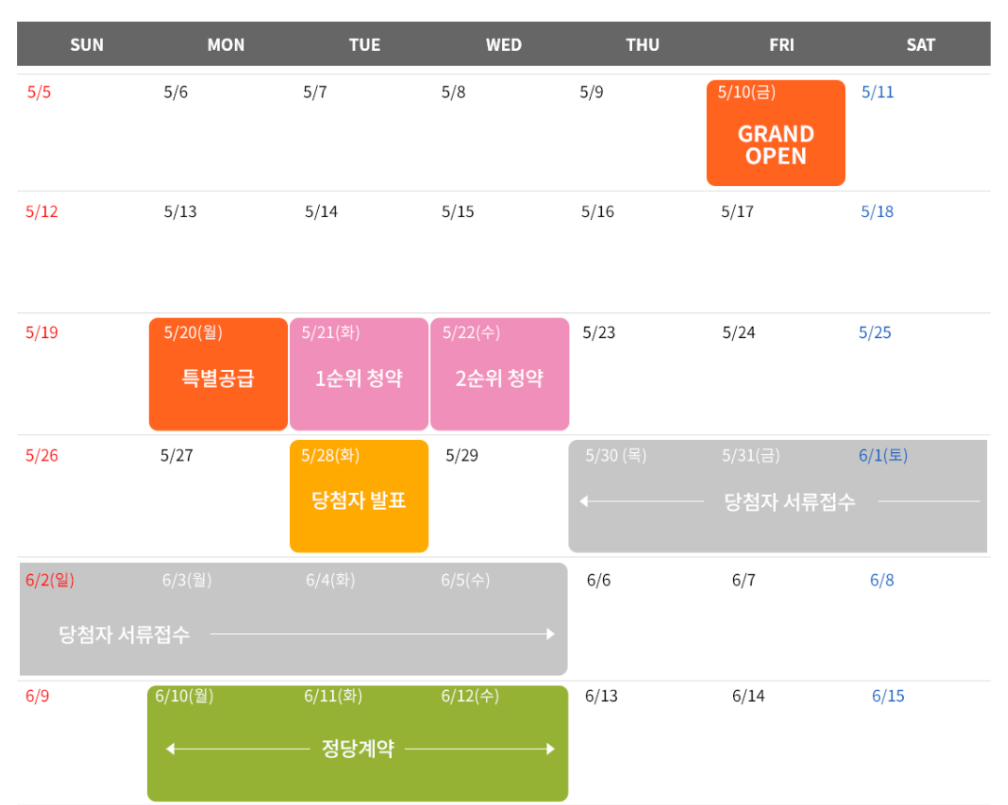 5월 21일(화) : 1순위 청약일(해당지역/기타지역)