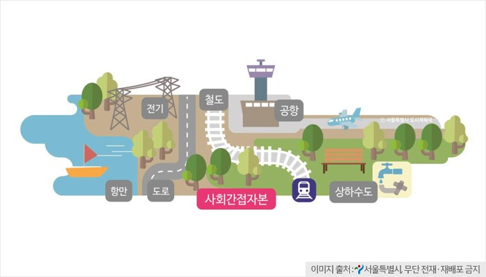 정부 또는 지방 공공단체의 통제하에 이루어지는 사회간접자본 또는 사회자본, 간접자본 등으로 전체를 위한 다수의 기업활동  또는 공익활동 등과 같은 국민들의 편의성 및 기업의 생산 활동 등 필요에 의해 마련되는 것. 지형 공간정보체계를 뜻하는 말로 도로, 항만, 철도 등의 산업발전의 기반이 되는 여러가지 공공시설을 뜻함.