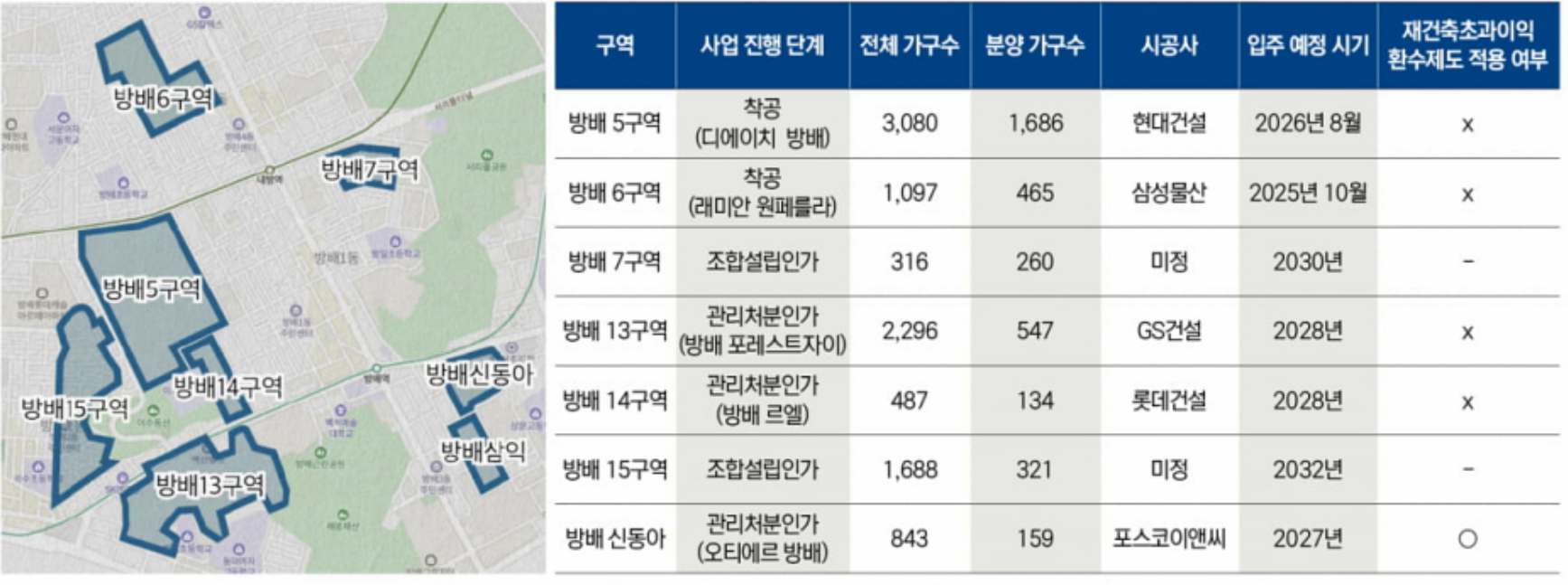 현재 방배 5구역에 들어선 디에이치 방배는 재건축지로써 3,064세대의 대단지로 들어올 예정