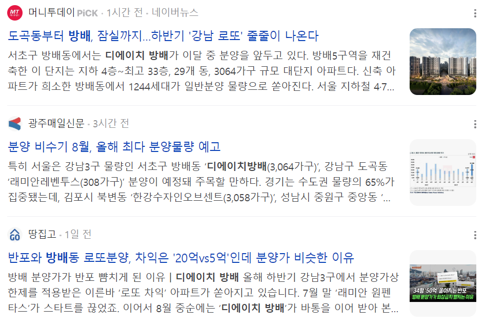 현재 디에이치 방배에서부터 래미안레벤투스, 잠실래미안아이파크 등 핫한 강남로또청약들이