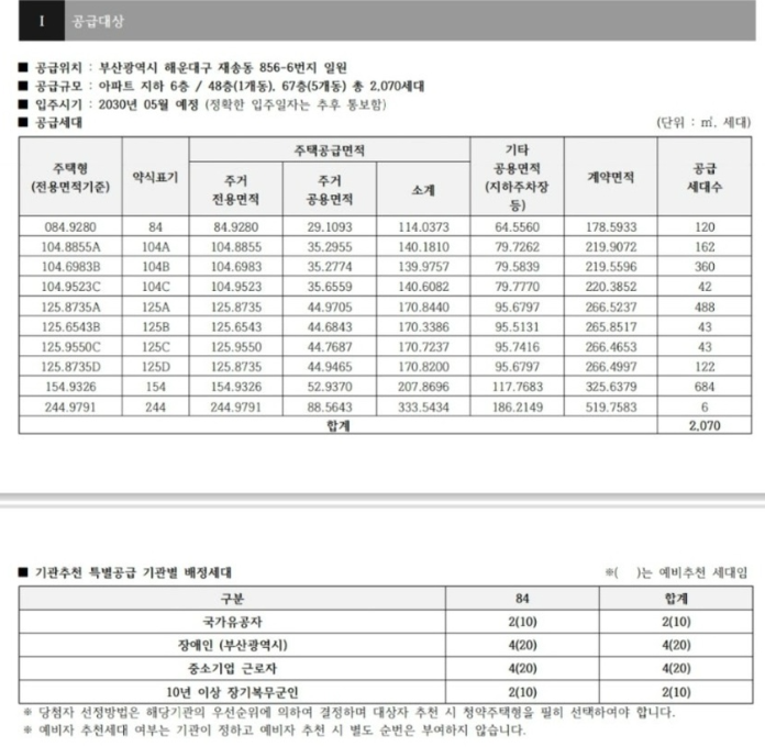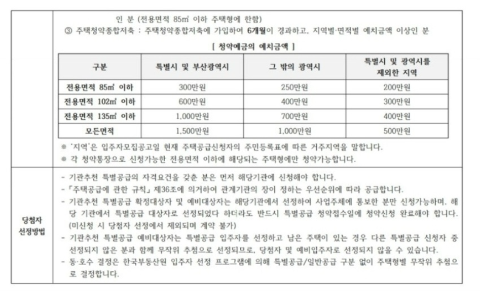 - 모든 면적 청약 시 부산광역시 및 특별시 기준 : 1,500만 원 이상 예치금 충족 시