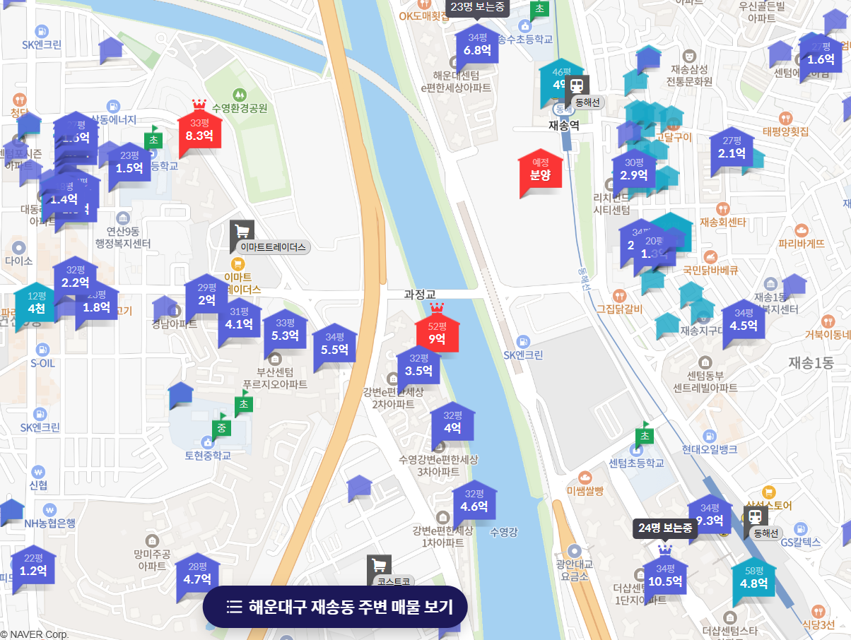 르엘 리버파크 센텀 -> 평당 4,500만 원 ~ 4,700만 원