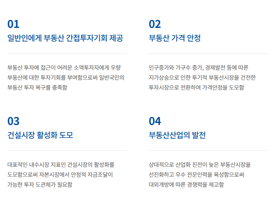 - 상장 리츠는 유동성이 높음 (주식처럼 즉시 매도 가능)