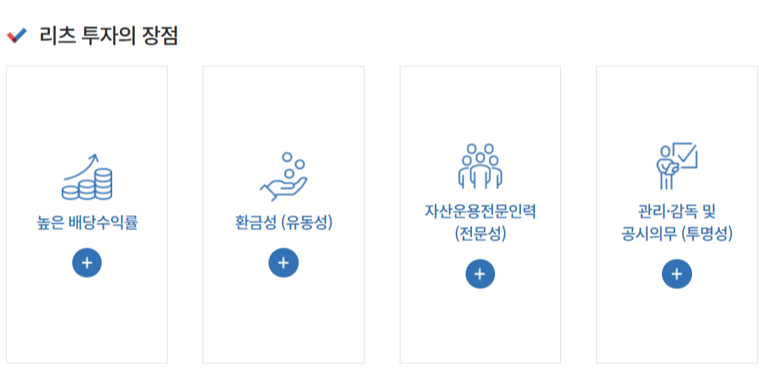 - 여러 부동산에 분산 투자되어 리스크 완화
