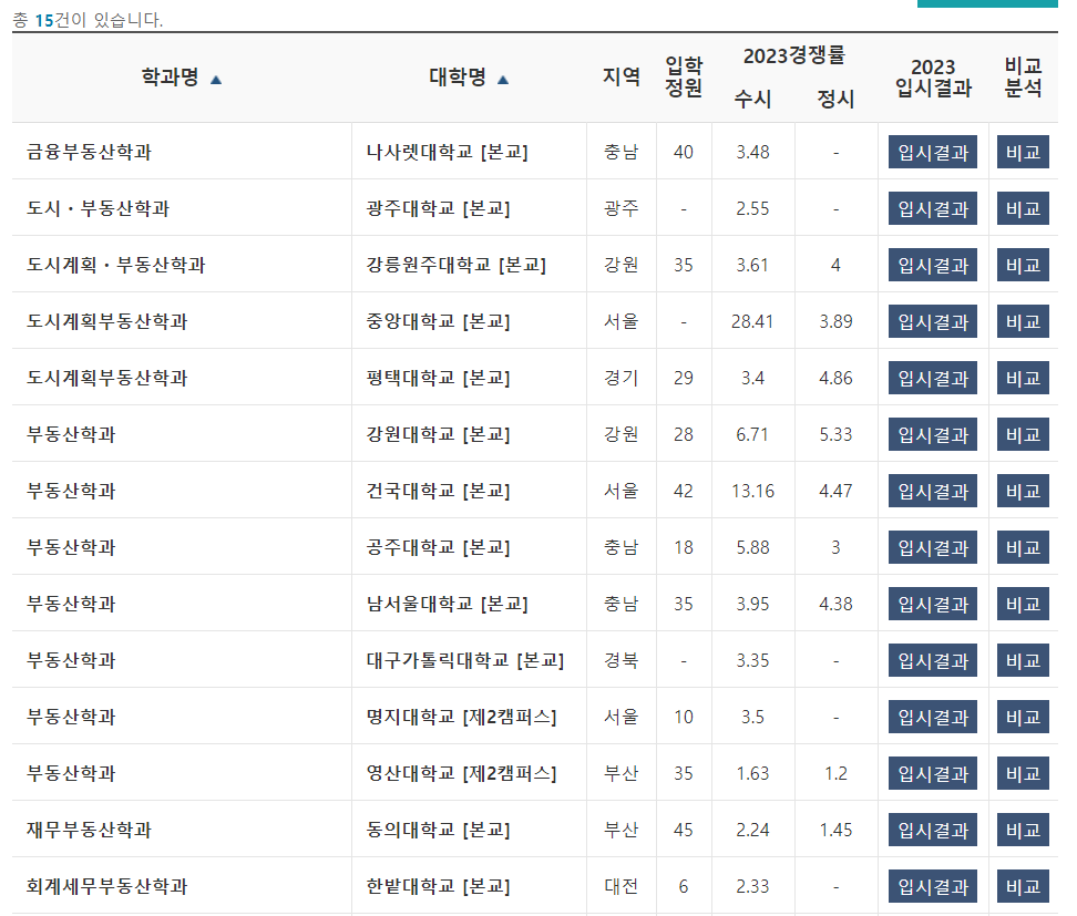 그렇다면 내가 부동산학과를 가려고 한다면 어디를 가야할지 순위를 간단하게