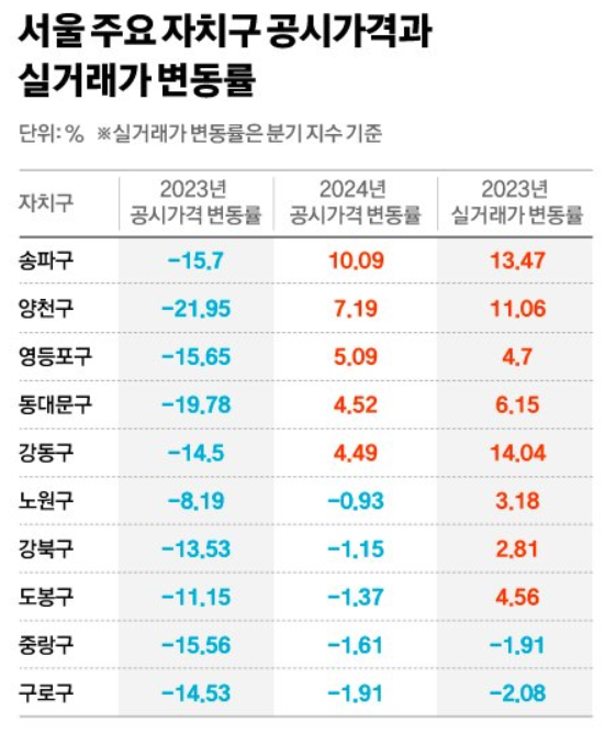 송파구 : 평균 공시가격 상승률 10.09%
