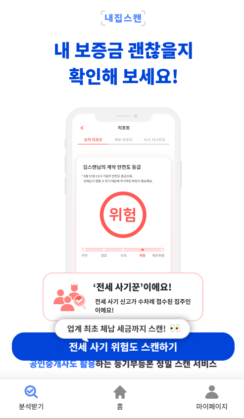 내집스캔이라는 어플은 요즘 전세사기에 피해를 너무 많이 봤다는 정보때문에 내가 살