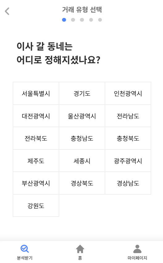 5. 거주 상태를 선택하신 후, 시군구 등의 위치를 선택합니다.