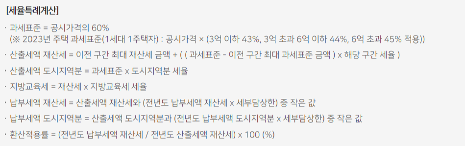 주택 : 재산 과세표준(공시가격) x 세율 = 세액