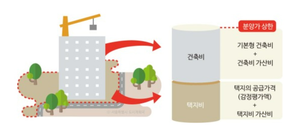 그래서 정부에서 마련한 정책이 분양가 상한제에요. 이 정책을 적용시키게 되면 가격에 일정한 제약이