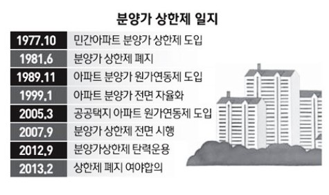 부동산 가격 상승을 조율하기 위해 아파트 분양가를 일정 금액 이하로 제한을 함으로써