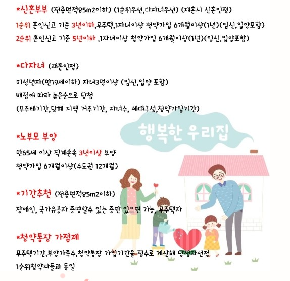 EX)노부모부양, 신혼부부, 다자녀 등등
