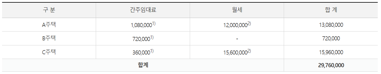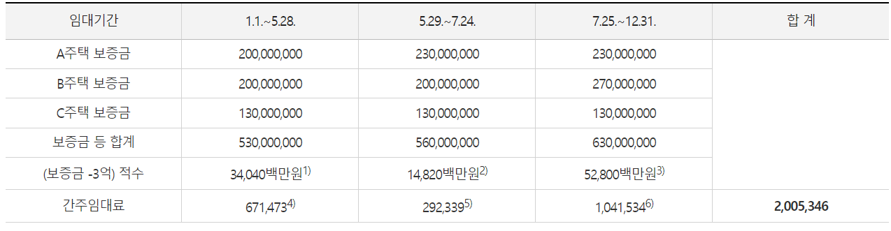 보증금 등 합계 : 간주임대료 계산 대상 주택의 보증금 등 합계액 3억원 초과