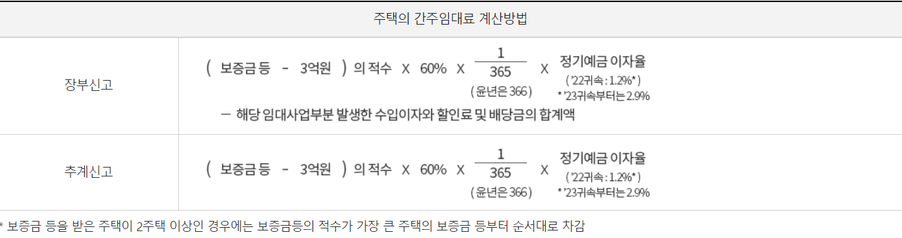 - 간주임대료 계산 시, 주택 수는 제외 / 소형주택 월세는 수입금액 포함
