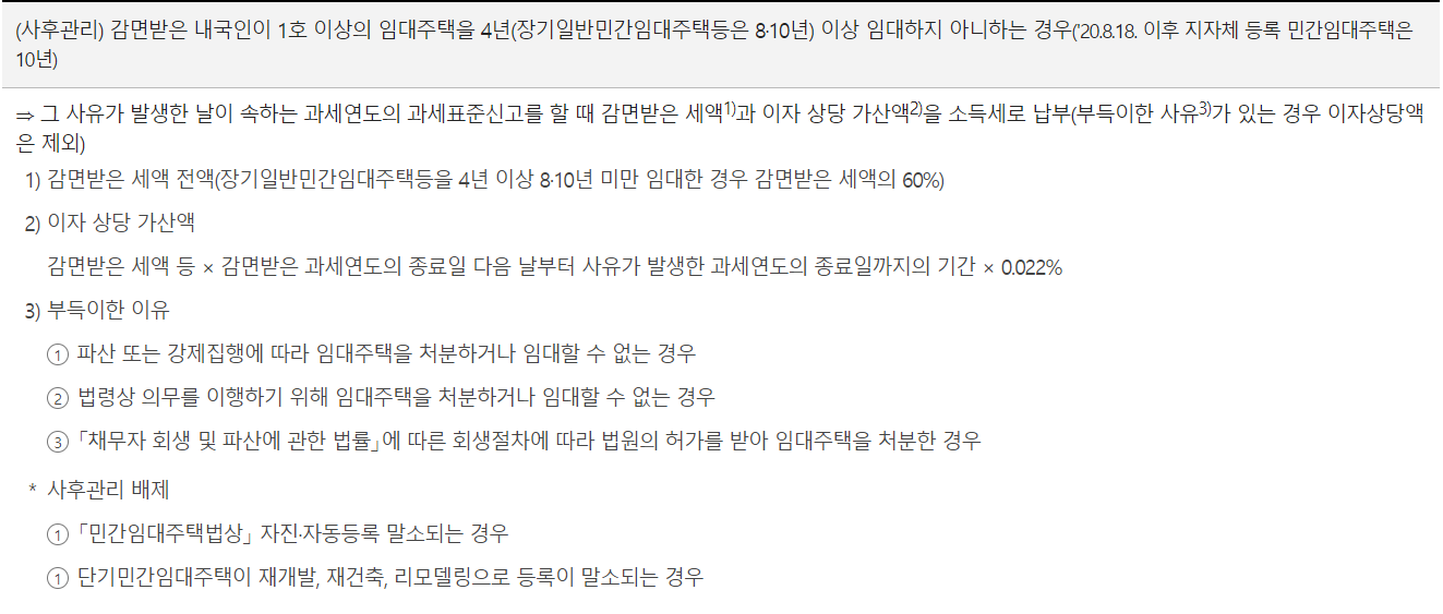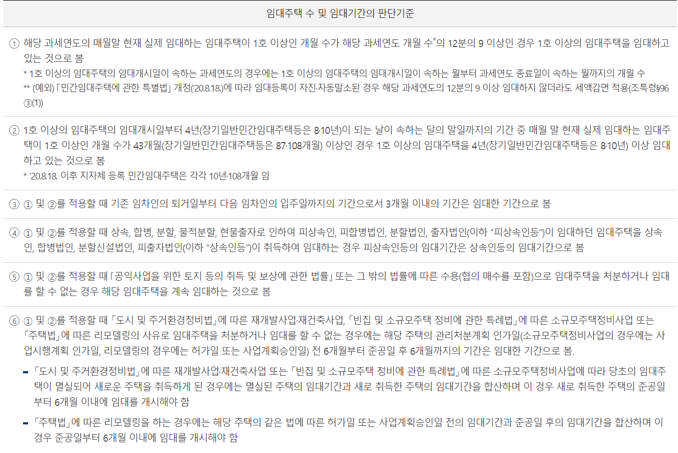 임대주택 1호 이상 4년 이상 / 장기일반민간임대주택 등은 8 ~ 10년 이상 임대.