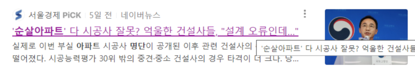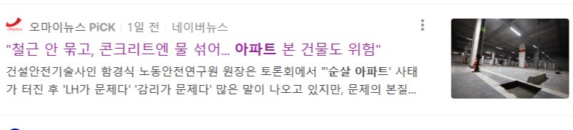 이에 우리 집이 순살 아파트인지 아닌지에 대한 걱정이 이만저만이 아니죠.