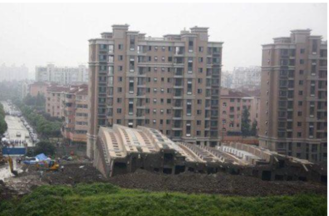 중국도 철근을 넣어야 할자리에 쓰레기, 갈대, 식용유 통 등을 넣어 아파트가 무너져내려