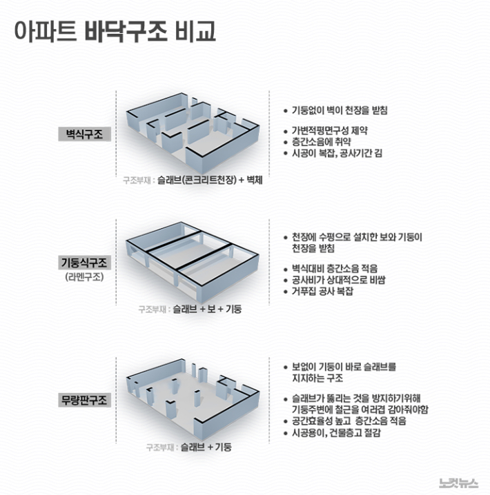 그 중에서도 가장 이슈가 되는 무량판구조는 어떤건지 한번 살펴볼까 하는데요.