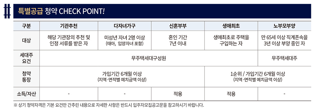 - 특별공급 시 : 세대원 모두 무주택자