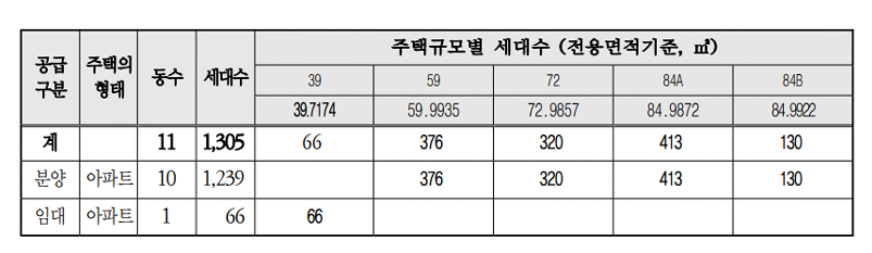 세대 수 : 1,305세대 중 일반분양 866세대