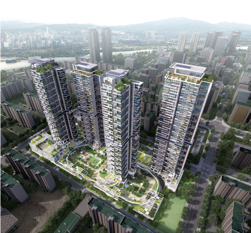 대교아파트는 1975년 준공되어 4개 동, 지상 12층, 총 576세대로 구성된 노후 아파트 단지다. 재건축 계획에 따르면 지하 5층~지상 최고 49층, 4개 동, 912세대 규모로 탈바꿈하게 된다. 또한 용도지역이 준주거지역으로 상향되며, 용적률은 약 470% 수준이다.