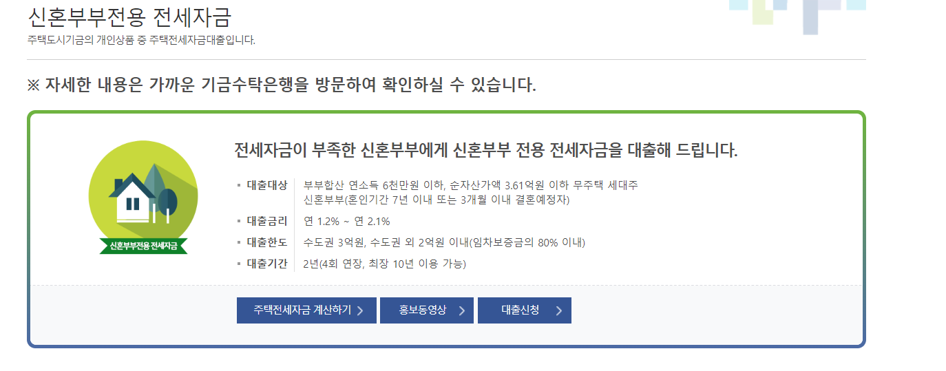 이 밖에도 '신혼부부 전용 전세자금 대출' 상품도 있네요.