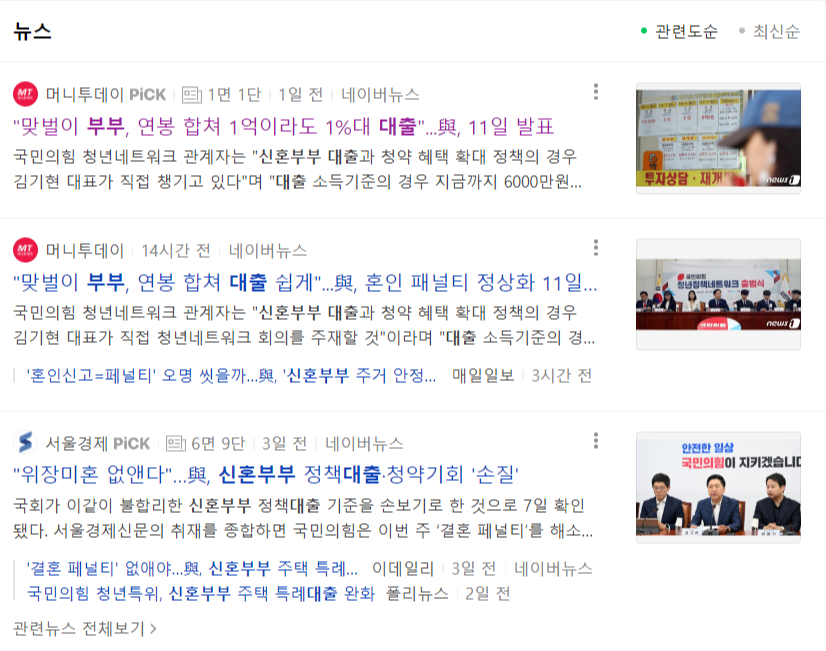 결혼을 한다고 해서 좋은 것도 아니고 요즘에는 대출을 받기도 너무 부담스럽고 청약도 신혼부부에게