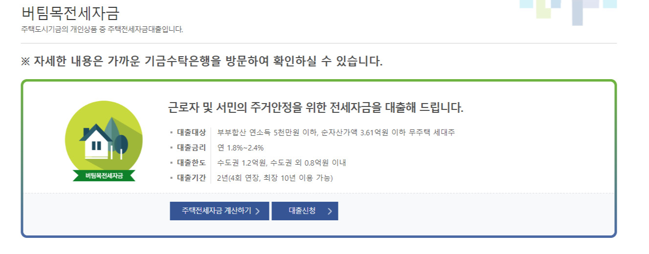 또한 '버팀목 전세자금'이라는 대출 상품도 있는데요.