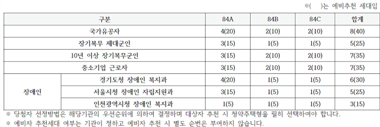 - 84타입 : 추첨제 60% 가점제 40% / 그 외 : 추첨제 100%