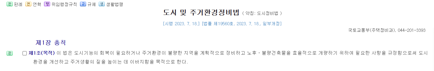기본적인 도시정비법은 도시 또는 마을을 계획적이며 조직적인 발전을 촉하고, 국민 생활의