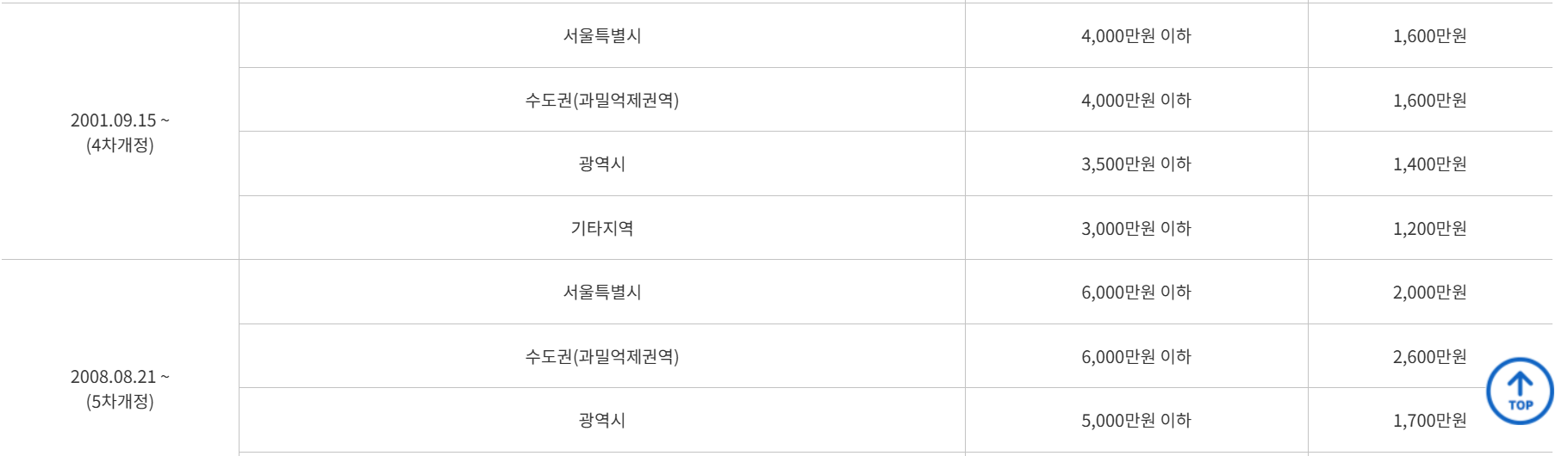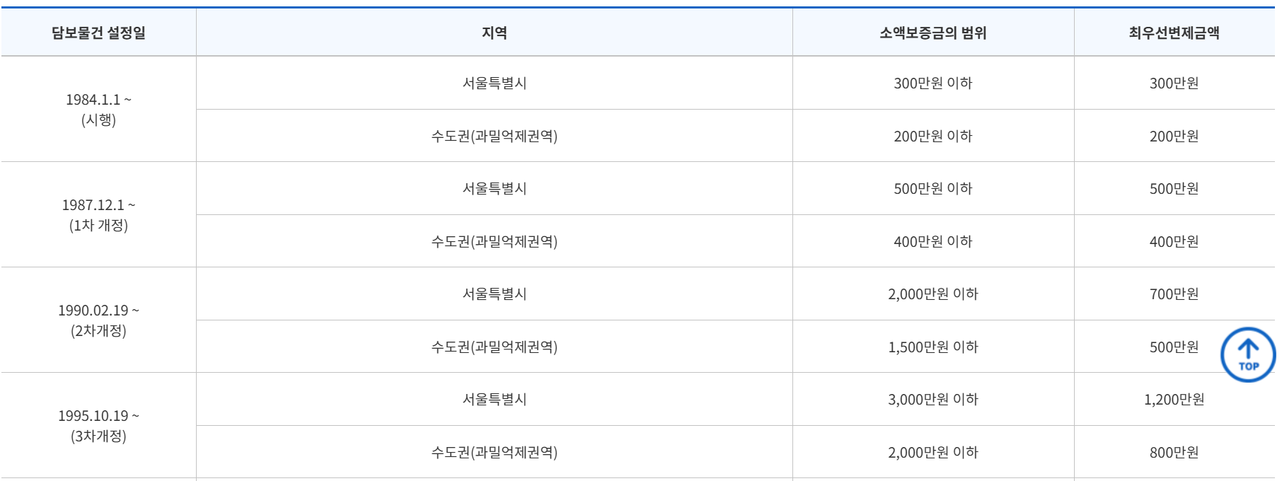 [소액보증금 및 우선변제금액 기준]