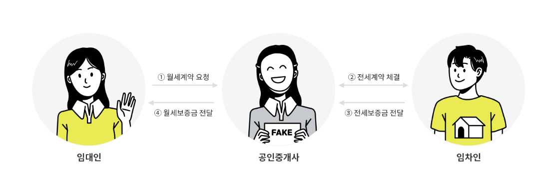 예시) 2019년 경기도 안산에서 일어난 범죄이며, 두명의 공인중개사가 월셋집을 전세집으로 둔갑시켜 전세보증금을 약 70억원 이상을 빼돌린 사건