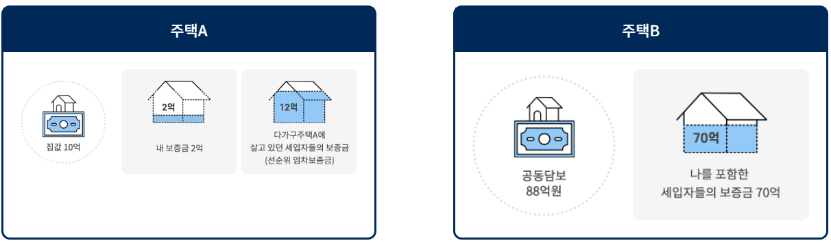 - 주택 B : 다세대주택 또는 오피스텔에는 공동담보가 너무 큼 -> 세입자들 보증금 보호가 제대로 지켜지지않을 수 있음