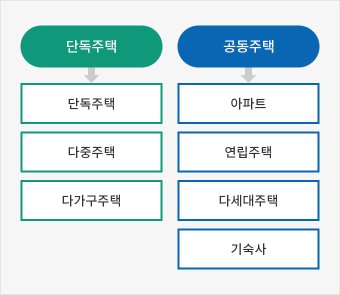 먼저 살펴봐야 할건 단독 주택과 공동 주택이에요.