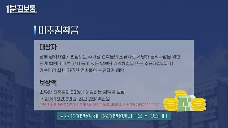 이주정착비는 주택소유자만 지급이 되고 있어요.
