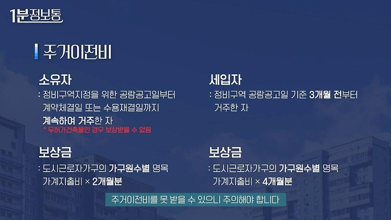 이사비는 주거용 건물 면적에 따라, 정비사업의 규모에 따라 보상을 받을 수 있어요.