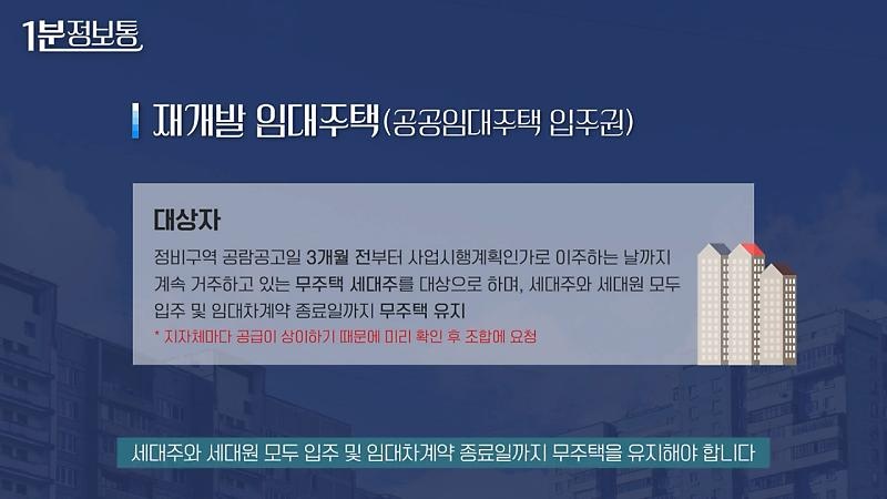 공시지가를 적용하여 주거이전비, 이사비 등의 일정금액과 공공임대주택 재개발 이후의